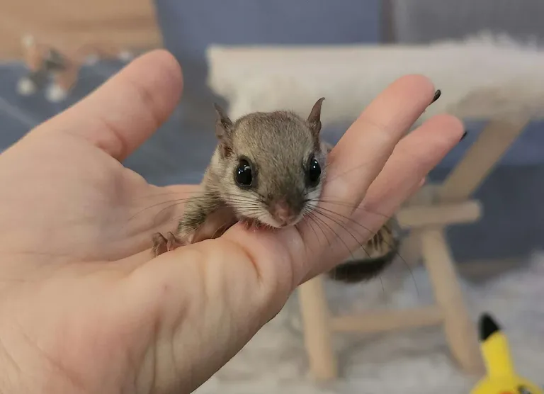 Beautiful, hand-raised baby flying squirrel with a sweet and curious temperament. Healthy, playful, and well-socialized — perfect for responsible exotic pet owners. Comes with health record, care instructions, and feeding guide. Ready for her new loving home and daily bonding time.