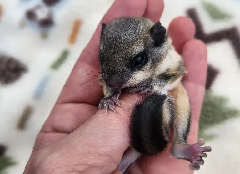 Discover the charm of this multicolored baby flying squirrel (male) — a healthy, hand-tamed companion ready to bring energy and affection into your home. Known for their adorable gliding abilities and curious nature, flying squirrels make delightful exotic pets for attentive owners.
