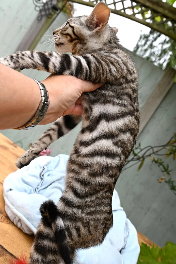 Adorable, healthy, and playful Toyger kitten with striking tiger-like stripes. Fully weaned, socialized, and ready for his new home. Comes with health records and care guidance. A perfect mix of exotic beauty and affectionate temperament — reserve your Toyger today!